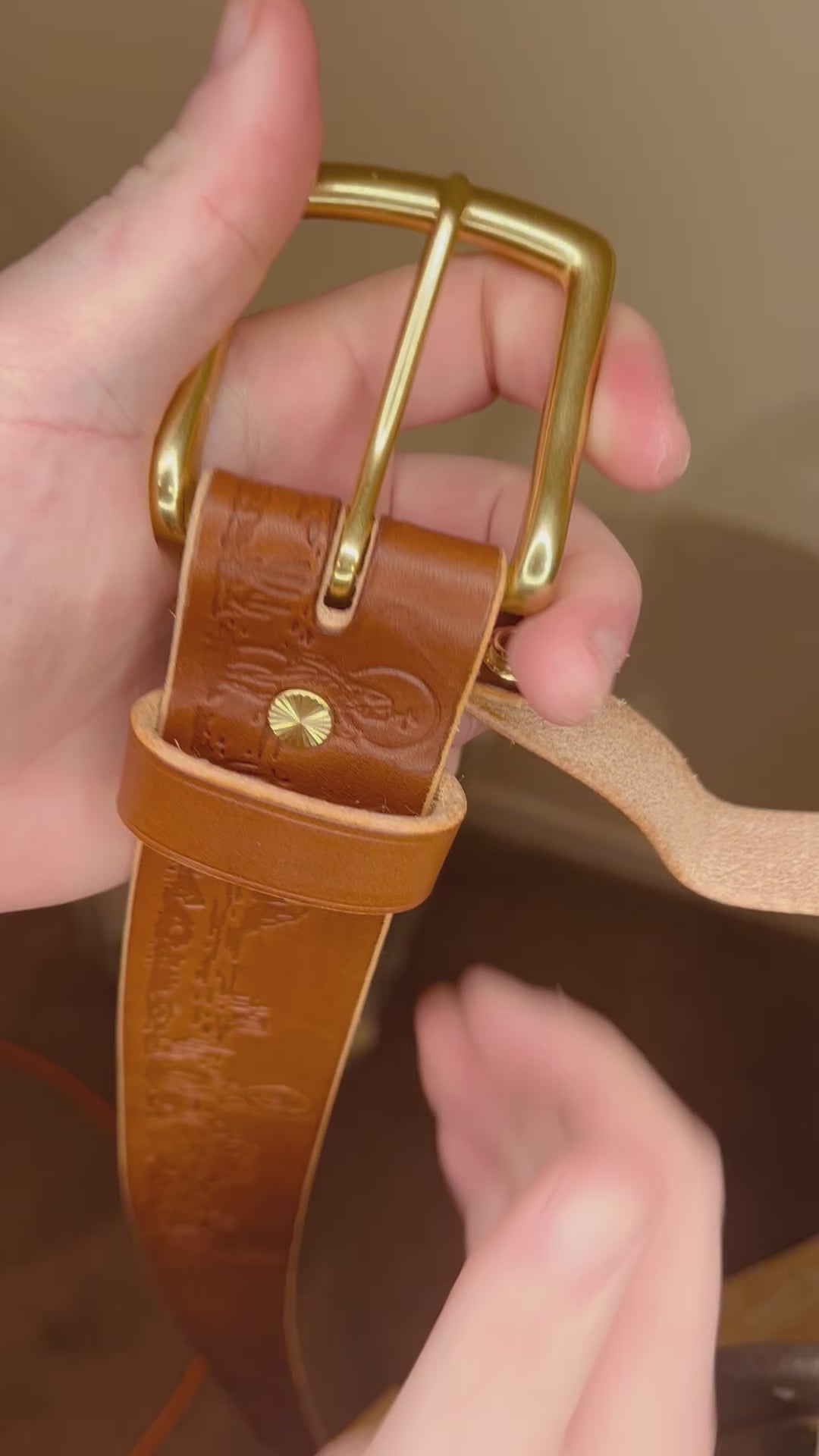The leather is a cut of 10-12oz (~4mm) Wickett and Craig bridle, which is a high grade vegetable tanned leather from a renowned American tannery. The leather is tough enough to withstand any day to day rigors, while supple enough to be worn comfortably. Belts are 1-3/4” wide.