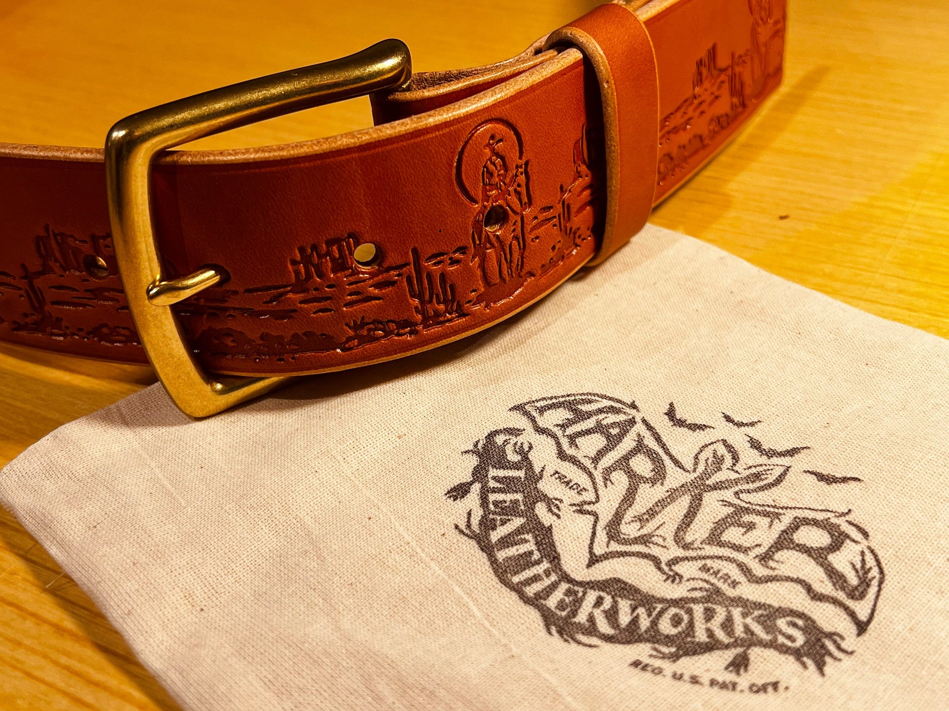 This handmade belt comes with brass hardware and sports a completely original embossing pattern that you won’t find anywhere else. The Boiadeiro (Portuguese for “cowboy”) evokes the image of southwestern sunset vistas and riding dusty trails on horseback.